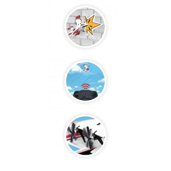 L’avion décolle et se stabilise dans les airs grâce à son gyroscope intégré, son corps est composé d’une mousse antichocs pour jouer en toute sécurité.