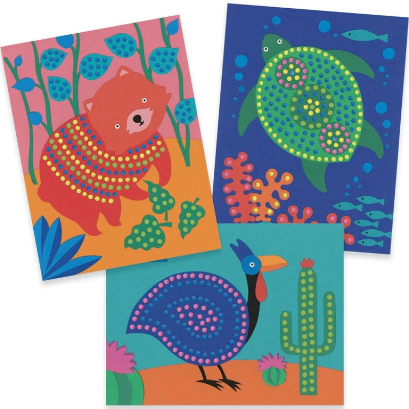 Avec ce coffret complet, les enfants vont réaliser 4 tableaux avec 4 animaux.