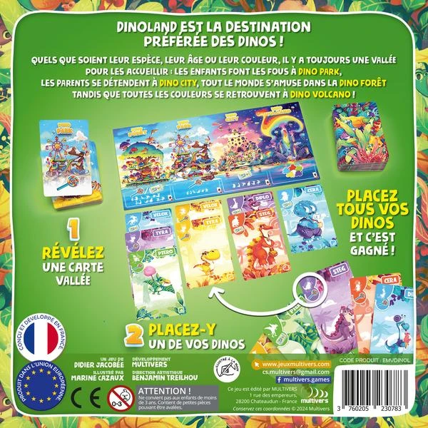 Les joueurs doivent réussir à se défaire de toutes leurs cartes Dino en les répartissant entre les 4 Vallées en fonction de leur espèce, de leur couleur ou de leur âge. Le premier joueur qui n’a plus de cartes Dino en mains gagne la partie.