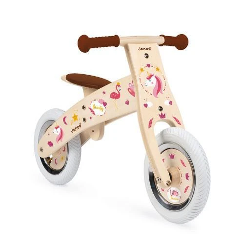 Cette draisienne nature peut être personnalisée avec les planches de stickers incluses (2 thèmes proposés : Licorne et Biker Club). Les stickers permettent également la personnalisation du Casque blanc J03277 vendu séparément.