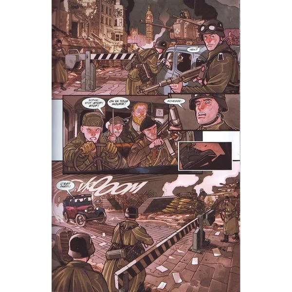 Dans les immeubles éventrés, les enfants se battent contre des rats pour glaner des restes de nourriture. Dans le palais de Buckingham, l’élite allemande dîne dans la vaisselle de la Reine.