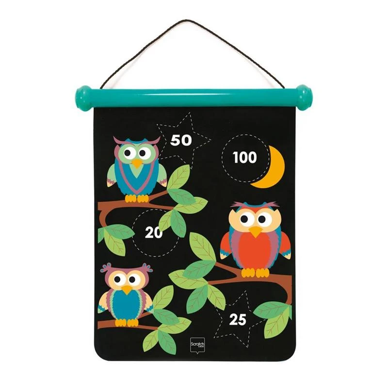 Le tapis magnétique est imprimé en double face. Les fléchettes en plastique sont dotées d’un embout métallique et ne comptent pas de parties pointues, les enfants peuvent donc y jouer en toute sécurité. Le tapis et les 6 fléchettes sont livrés dans un tube en carton épais permettant de ranger le jeu dans un espace réduit.