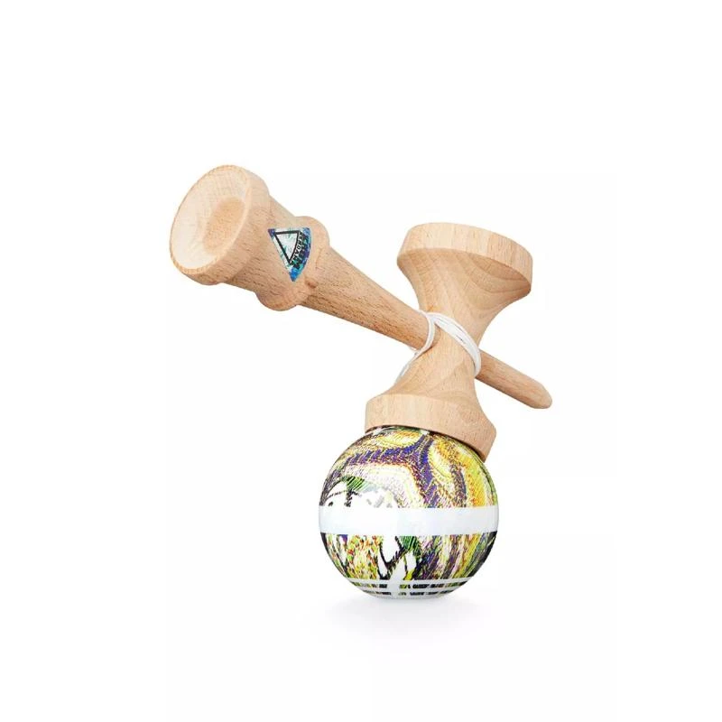 Le tama est psyché comme à son habitude et change de design en fonction de votre angle de vue et de votre proximité avec le kendama ! La bullseye a été amélioré avec une scope line pour améliorer votre capacité à suivre le trou.