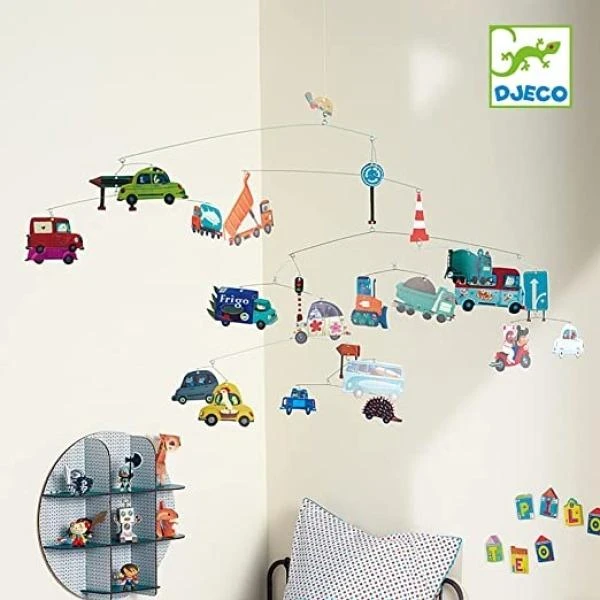 Matière : structure du mobile en tige métallique, décors en polypropylène, fil de nylon.