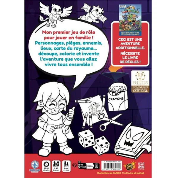 Mon premier jeu de rôle pour jouer en famille ! Personnages, pièges, ennemis, lieux, carte du royaume… découpe, colorie et invente l’aventure que vous allez vivre tous ensemble !