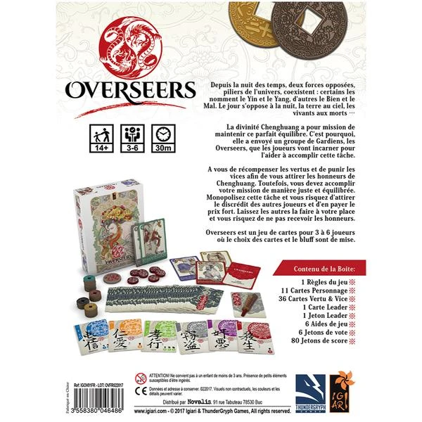 À vous de récompenser les vertus et de punir les vices afin de vous attirer les honneurs de Chenghuang. Toutefois, vous devez accomplir votre mission de manière juste et équilibrée. Monopolisez cette tâche et vous risquez d’attirer le discrédit des autres joueurs et d’en payer le prix fort. Laissez les autres la faire à votre place et vous risquez de ne pas recevoir les honneurs.
