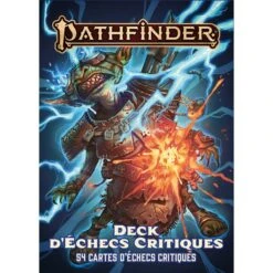 Donnez plus de saveur à ce 1 naturel ! Pourquoi vous limiter à une petite déception alors que vous pouvez tout faire foirer en beauté ? Avec le deck d’échecs critiques Pathfinder, vous tirez une carte et appliquez l’un de ses quatre effets lorsque vous essuyez un échec critique. Les fumbles n’ont jamais été aussi catastrophiques… ou aussi comiques !