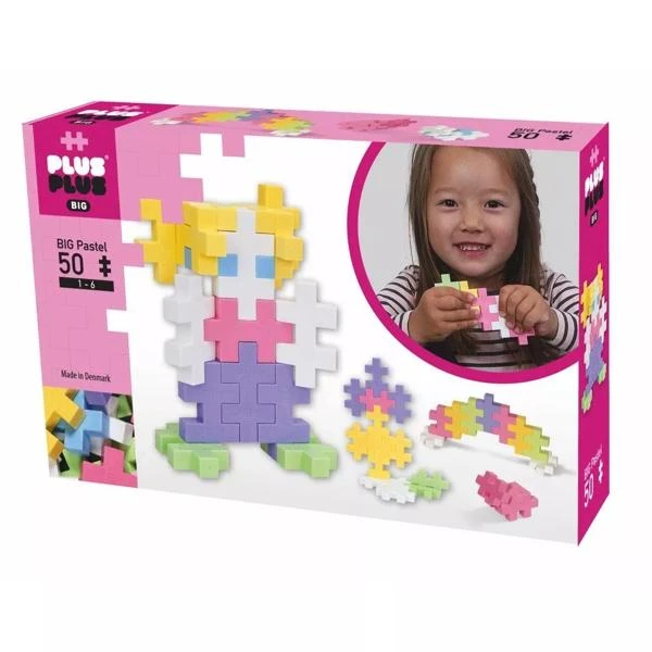 Contient : 50 pièces de Plus-Plus BIG couleur pastel et un guide de construction.