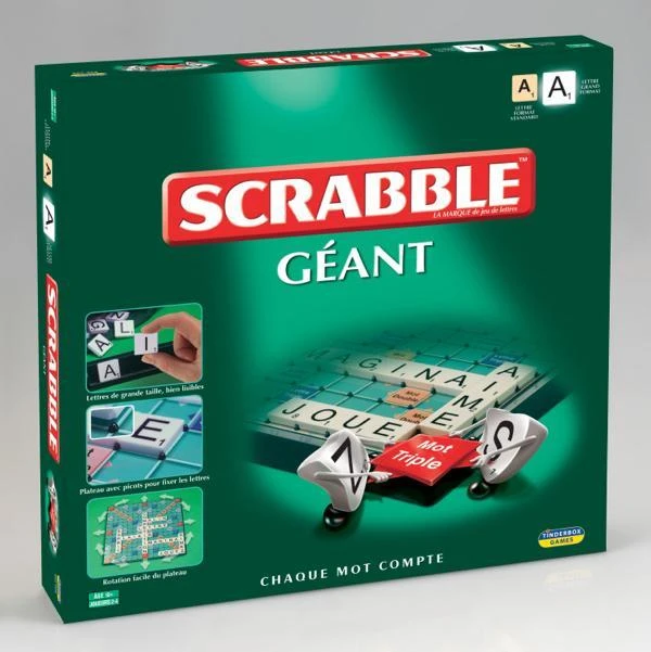 Cette déclinaison très qualitative contient des lettres et des chevalets ainsi qu’ un plateau de jeu géant, au format supérieur (+35%), pour un confort d’utilisation accru.