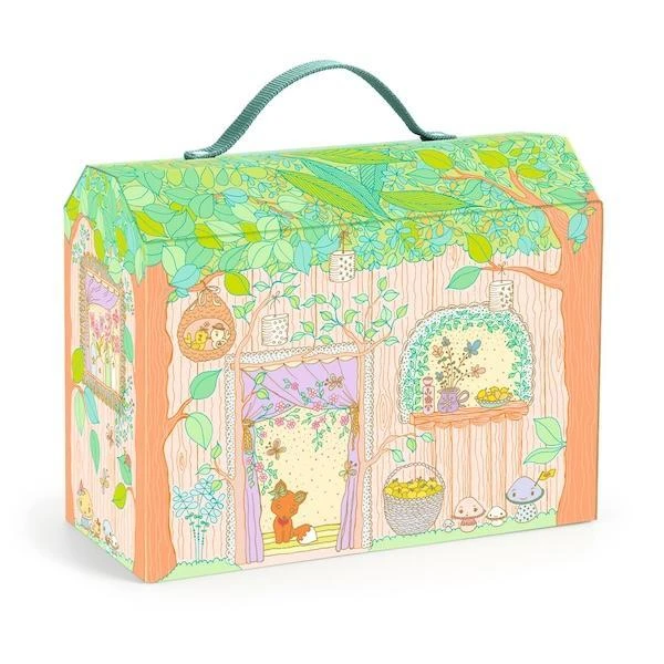 À l’ouverture de la valisette, les enfants vont découvrir une tiny house confortable, construite autour d’un arbre comprenant deux chambres, une cuisine, un salon, une table, et à l’extérieur un paysage bucolique relaxant avec la rivière qui passe tout près pour jouer avec leurs figurines Tinyly.