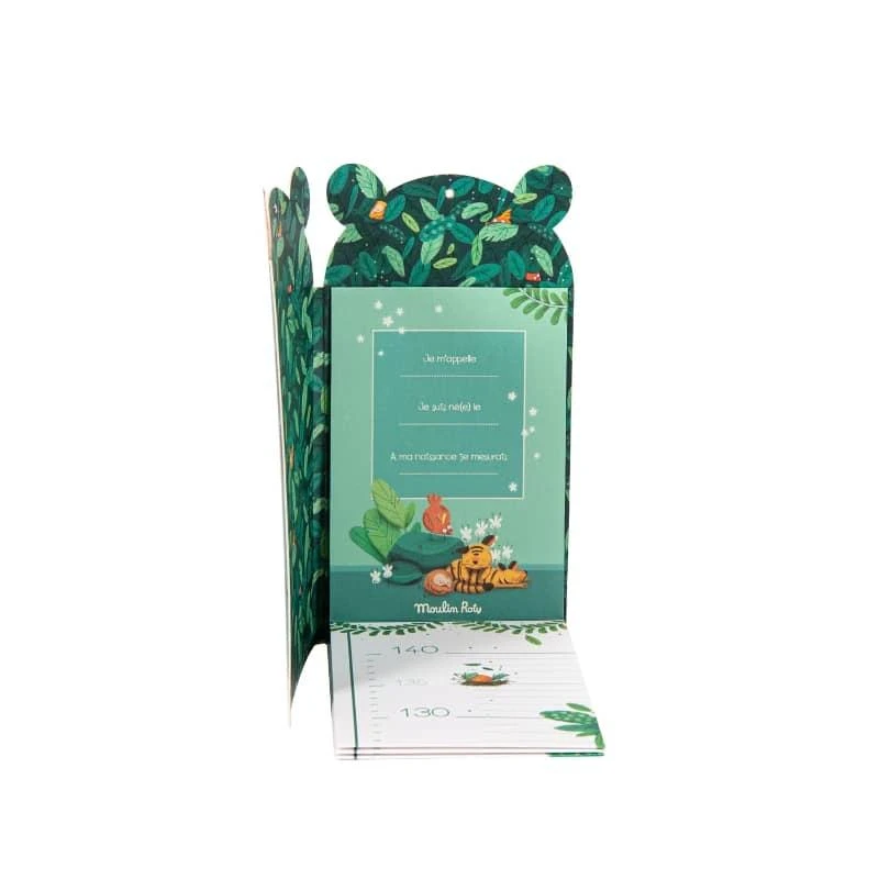 Très originale, cette belle toise en carton avec stickers déco reprenant les couleurs et illustrations de la collection dans la Jungle.
