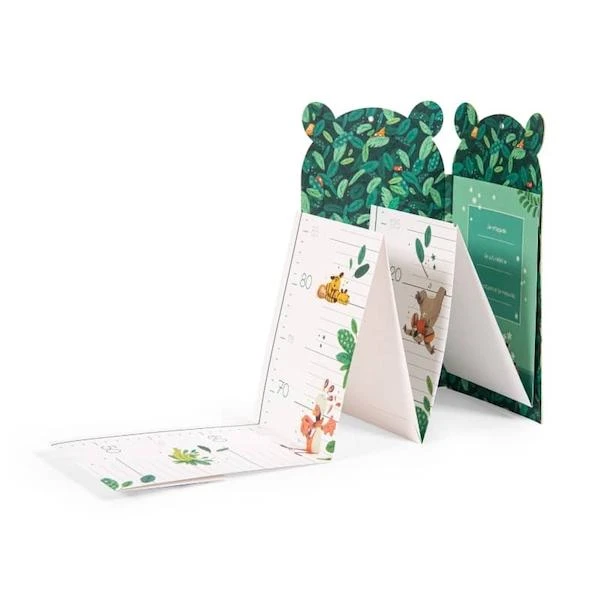 Présentée sous la forme d’un carnet, elle devient une fois dépliée, un joli accessoire déco pour y noter la taille de vos enfants mais aussi plein d’anecdotes et souvenirs !