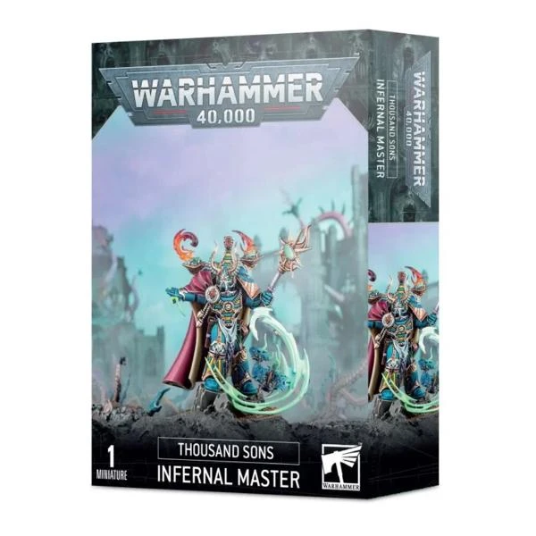 Le Maître Infernal renforce vos Thousand Sons grâce à divers Pactes Infernaux, qui améliorent les alliés et paralysent les ennemis en mettant en œuvre la sournoiserie et la ruse de ses familiers démoniaques. Étant lui-même un psyker, le Maître Infernal peut aussi utiliser une terrible sorcellerie et défier les chefs adverses en combat avec son sceptre de force coruscant.