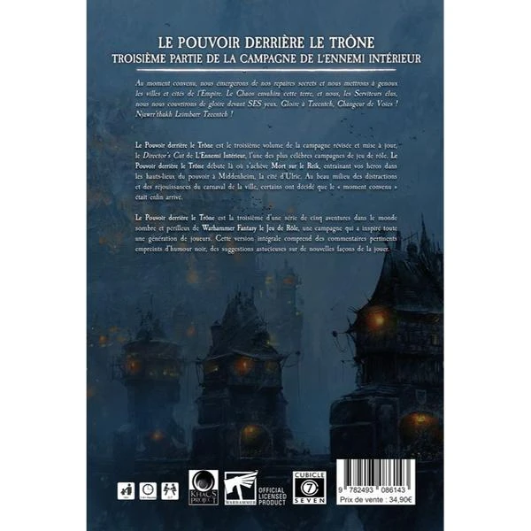 Le Pouvoir derrière le Trône est le troisième volume de la campagne révisée et mise à jour, le Director’s Cut de L’Ennemi Intérieur, l’une des plus célèbres campagnes de jeu de rôle. Le Pouvoir derrière le Trône débute là où s’achève Mort sur le Reik, entraînant vos héros dans les hauts-lieux du pouvoir à Middenheim, la cité d’Ulric. Au beau milieu des distractions et des réjouissances du carnaval de la ville, certains ont décidé que le « moment convenu » était enfin arrivé.