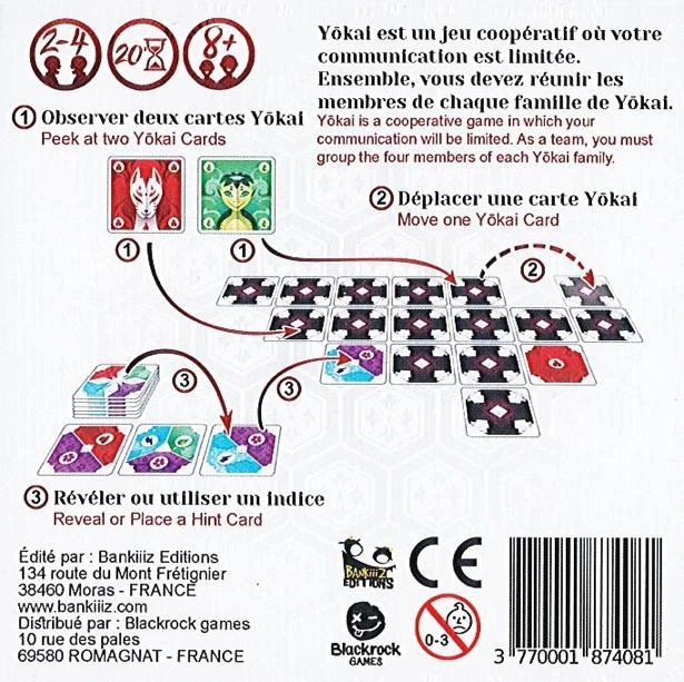 Yokai est un jeu coopératif où votre communication est limitée. Déplacez les Yokai pour les rassembler par famille. Interprétez les actions des autres joueurs et laissez-leur des indices pour les aider à deviner qui se cache derrière les cartes !